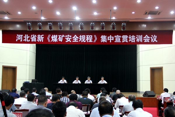 此次培训班在开滦集团和冀中能源集团分别设主会场,下设分会场17个。来自河北全省各产煤市、县的煤矿安全监管人员和各煤矿企业班子成员、煤矿矿长、副矿长、总工程师等1500余名学员接受了为期3天的新版《煤矿安全规程》集中宣贯培训。